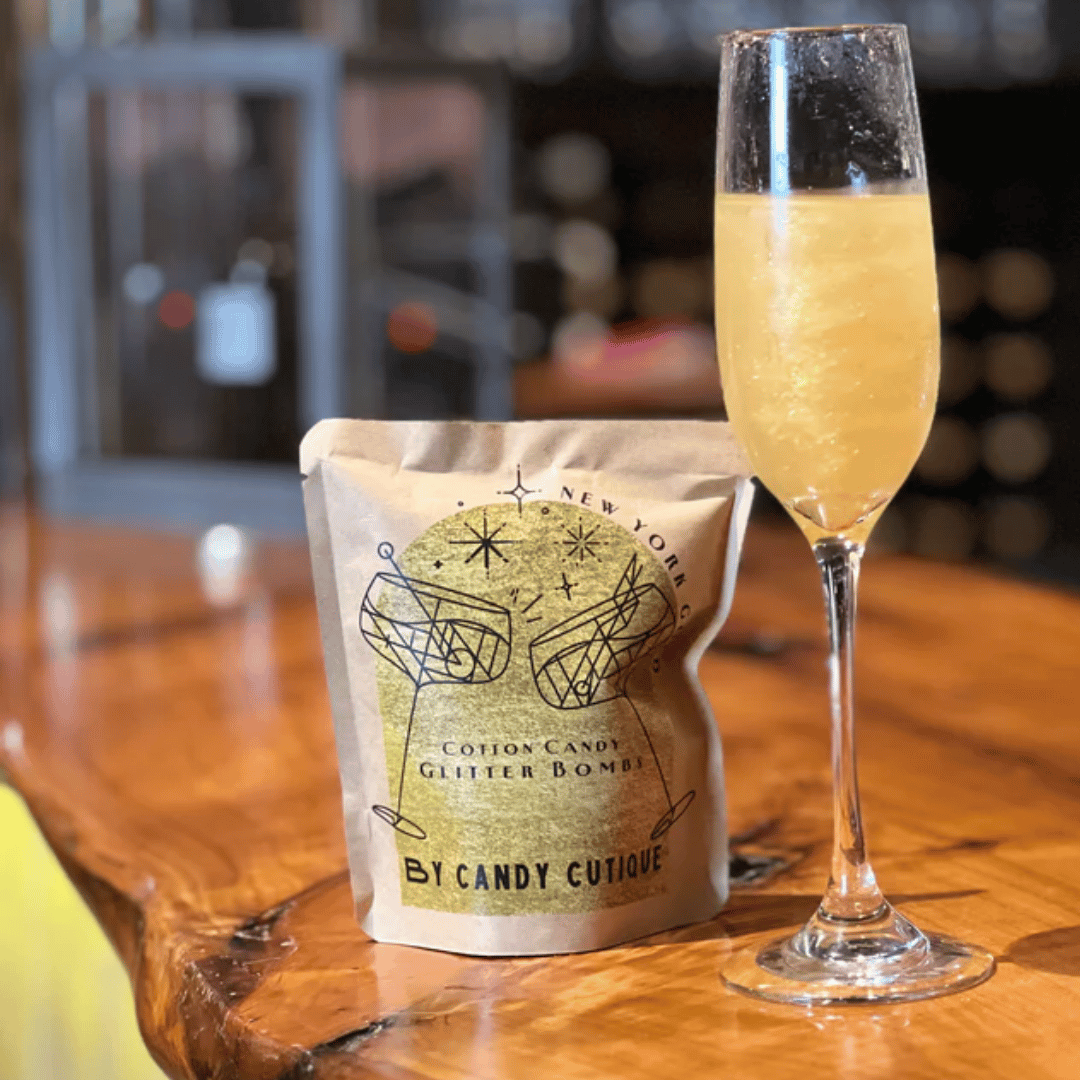 Get ready to add some sparkle to your drink with our hand-spun puffs of cotton candy in glittery New York Gold!